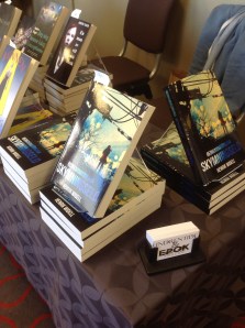 Nu i helgen har förlaget hållit hus i Uppsala på årets Swecon: Kontur 2017. Elin Holmerin modererade panelen ”Vad gör vi när jorden har gått under?” om post-apokalyptisk litteratur (och annat). Ni som ännu inte har varit på en litteraturkongress, se till att gå nästa år, helgen före midsommar på Dieselverkstaden i Stockholm. Trevligt folk, intressanta diskussioner och paneler.