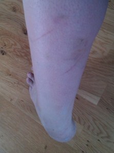 Beställ hem en hel hög med brädor som måste flyttas från ena sidan huset till andra sidan huset. Styrketräning på hög nivå, plus att man kan passa på att skrapa upp baksidan av vaden när man kliver över brädorna.